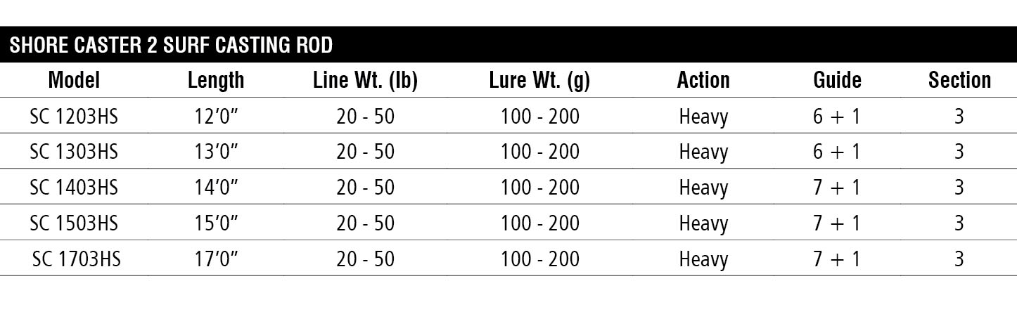 Seahawk’s Shore Caster is back with the all-new Shore Caster 2 – still featuring a lightweight body with a fluorescent tip for increased visibility during night fishing. This lightweight surf rod boasts medium to medium fast action with a strong lifting power and acute sensitivity, fully equipped with heavy duty DPS reel seat and one folding guide for easy storage and transportation.