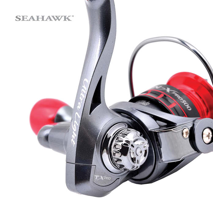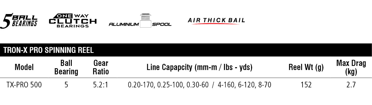 From our popular ultralight Tron-X, comes the Tron-X PRO. With this model, we maintained all the in-demand features of the Tron-X—aluminum handle, spool & knob, super lightweight, easy portability, smooth line retrieval and anti-reverse for a solid hook-set—PLUS an upgrade from a regular knob to a round aluminum one. The light aluminum helps for quick response while the round knob provides you with extra control of the reel for a more powerful game. This design also gives the reel an even sportier look.