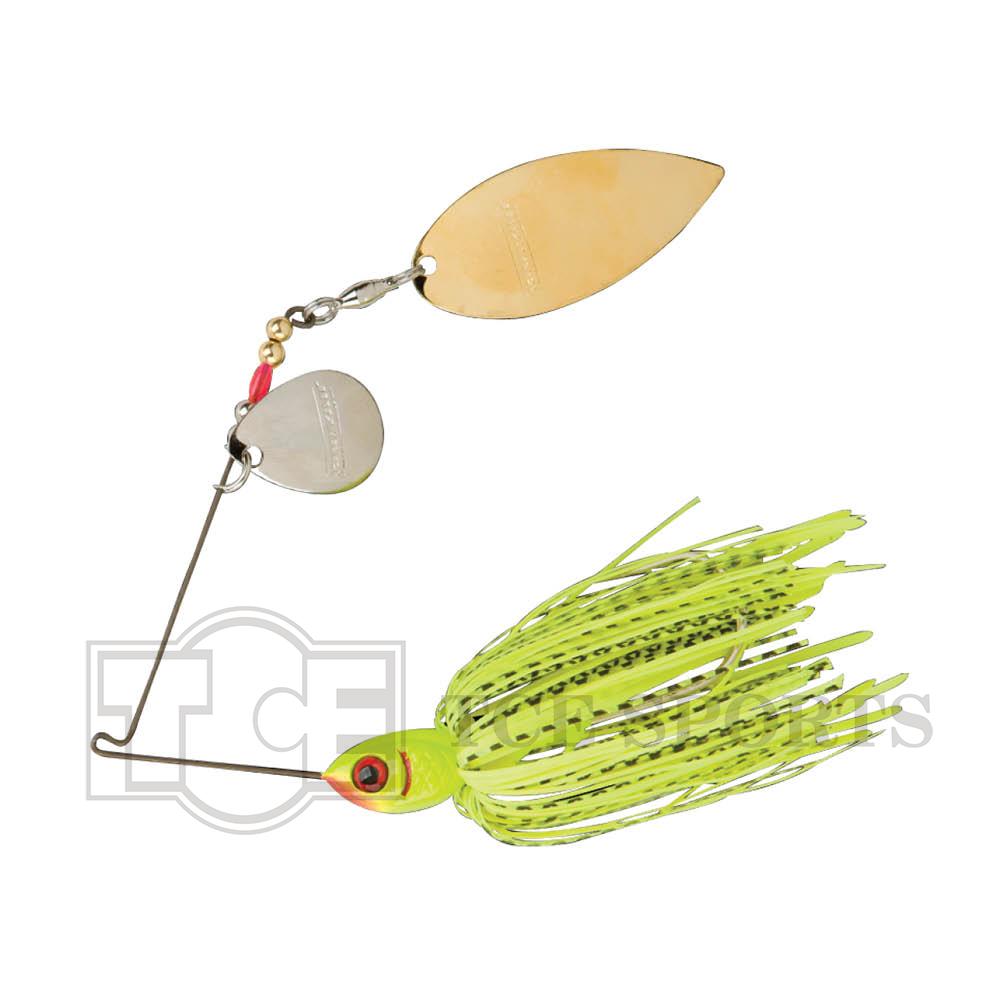 Added spinnerbait vibration means extra fish-attracting potency. This bait’s frame is built from Vibra-FLX wire, which creates more vibration than standard stainless wire. In addition, Vibra-FLX wire offers flexible memory (meaning it remains tuned after several catches) and added toughness (twice as strong as standard stainless wire frames). Every Vibra-FLX Spinnerbait comes loaded with great features including counter-rotating blades, and a skirt that undulates like flat rubber, but because it is silicone is much more durable.